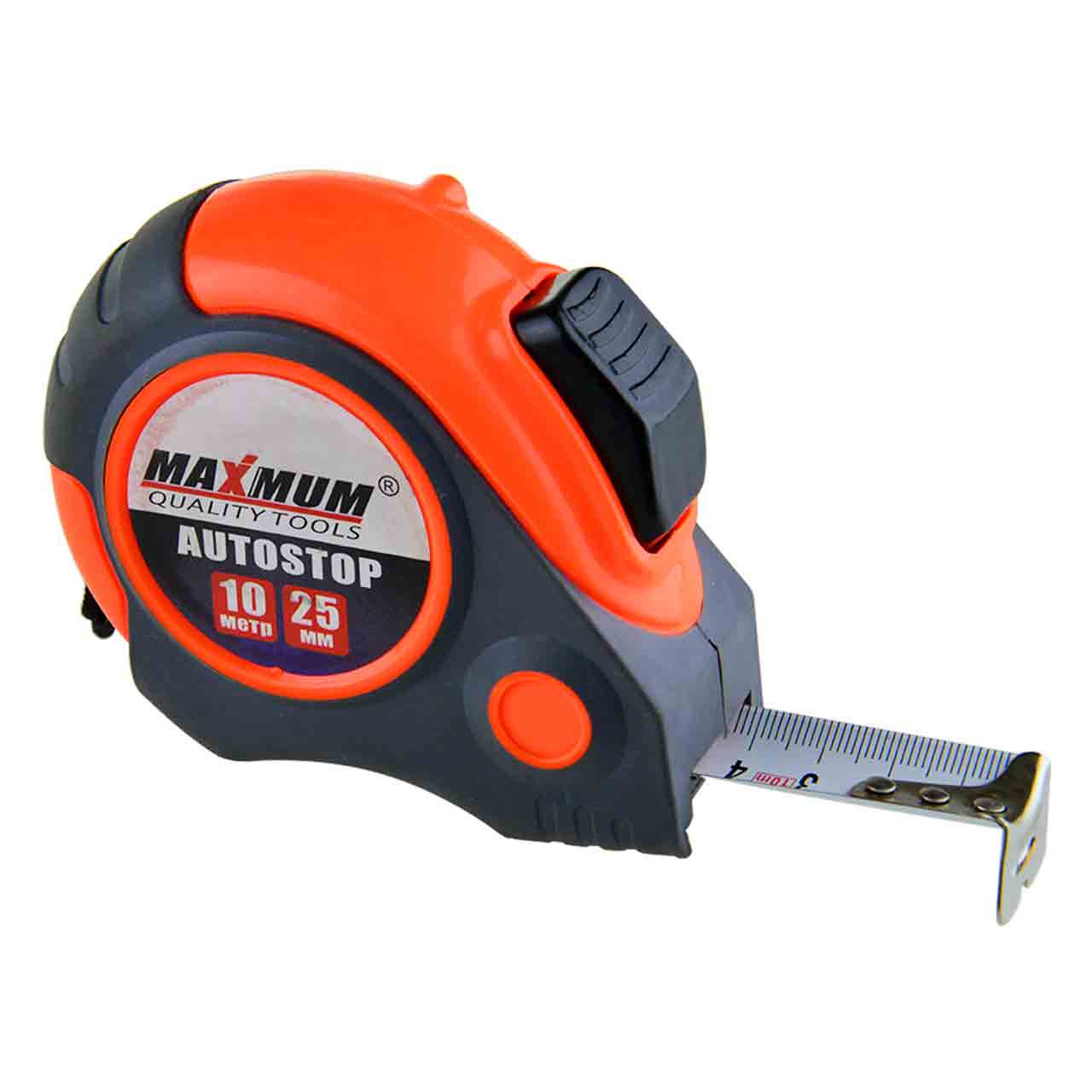Измерительная строительная рулетка 10 м*25 мм от бренда "MAXIMUM" отличается простотой и удобством в работе, так как оборудована автофиксатором.