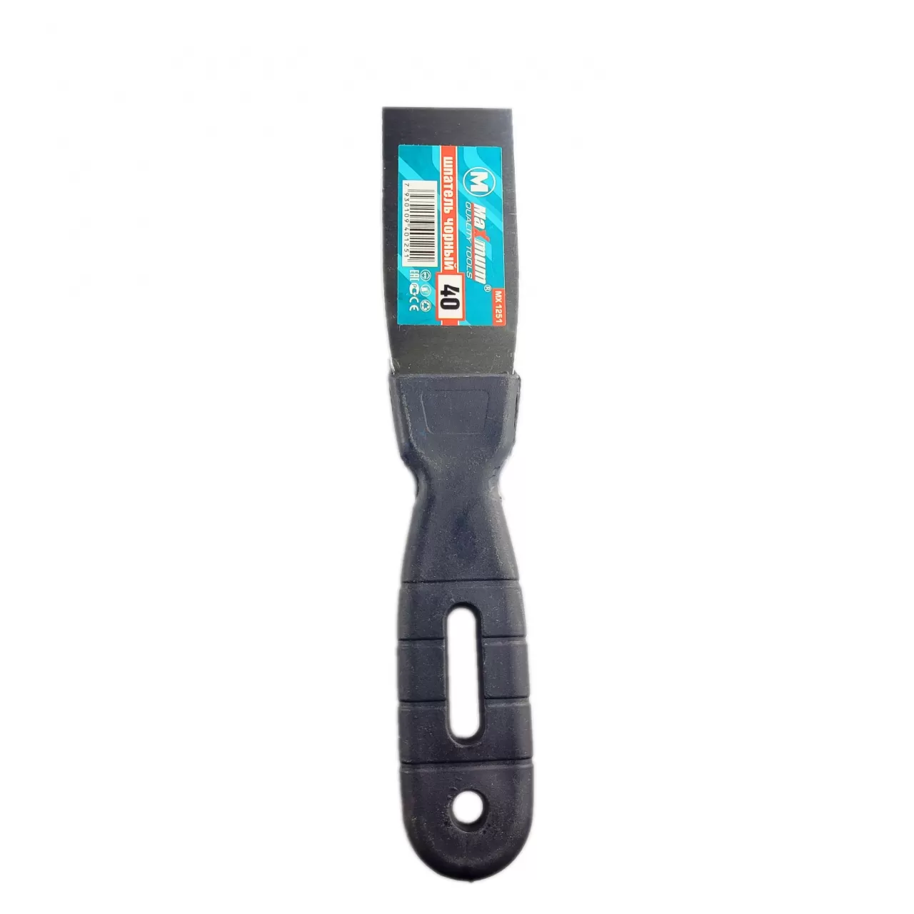 Шпатель из нержавеющей пружинной стали 40 мм имеет полотно средней жесткости.